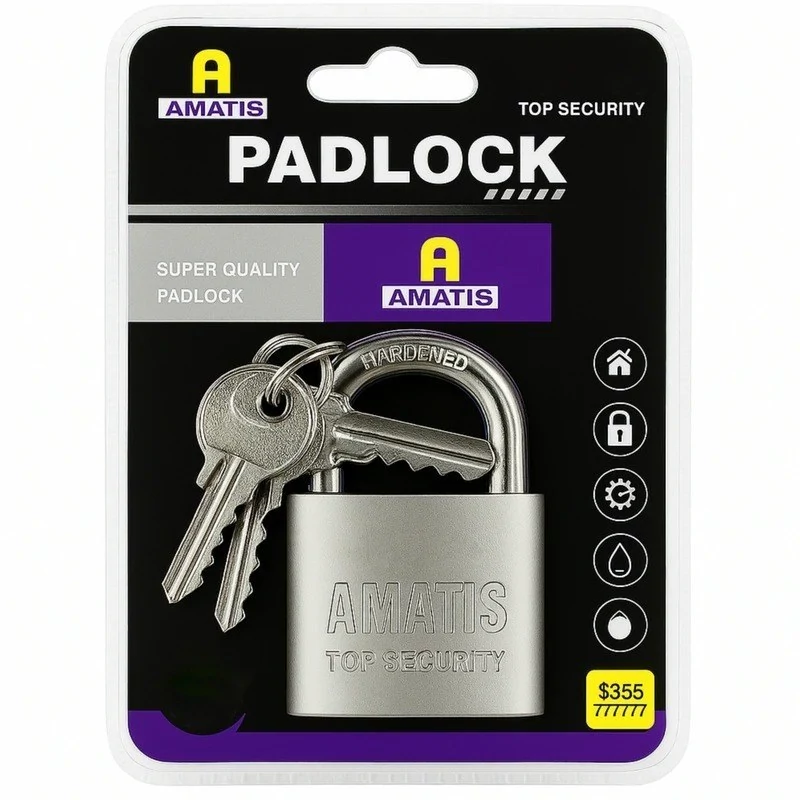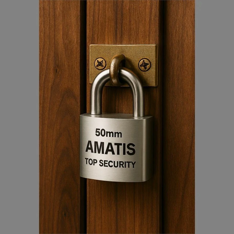 قفل آویز آماتیس از ایمنترین قفلهای بازار در ابعاد خود میباشد. این قفل فولادی کاربردهای متنوعی در منازل، فروشگاهها، انبارها، باغها، خودروها، موتور سیکلتها، دوچرخهها و... دارد و امنیت خاطر را برای شما فراهم میکند. قفل آویز آماتیس ضد برش و ضد اهرم میباشد. بدنهٔ فولادی قفل نیز، استحکام و کیفیت را به ارمغان میآورد. همچنین دو زبانه برای آن طراحی شده تا از دو طرف قفل شود. قفلهای آویز آماتیس همراه با سه کلید عرضه میشوند. همچنین بستهبندی کادویی محصولات آماتیس، زیبایی را به شما هدیه میدهند. نام آشنای آماتیس، ضامن کیفیت و ایمنی بالای این محصول خارجی است.