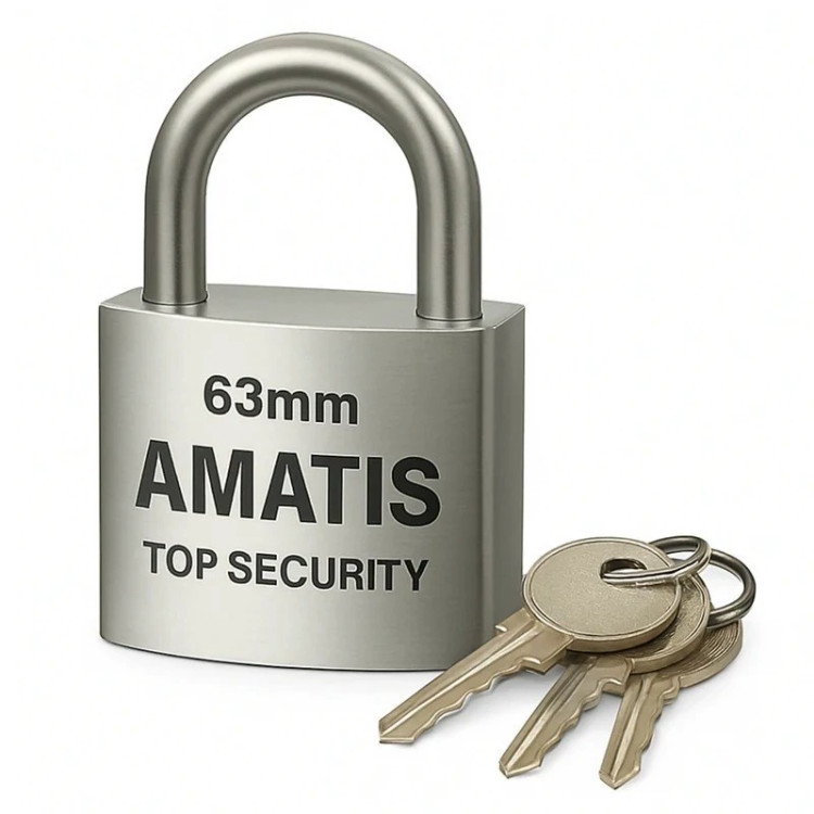 قفل آویز آماتیس از ایمنترین قفلهای بازار در ابعاد خود میباشد. این قفل فولادی کاربردهای متنوعی در منازل، فروشگاهها، انبارها، باغها، خودروها، موتور سیکلتها، دوچرخهها و... دارد و امنیت خاطر را برای شما فراهم میکند. قفل آویز آماتیس ضد برش و ضد اهرم میباشد. بدنهٔ فولادی قفل نیز، استحکام و کیفیت را به ارمغان میآورد. همچنین دو زبانه برای آن طراحی شده تا از دو طرف قفل شود. قفلهای آویز آماتیس همراه با سه کلید عرضه میشوند. همچنین بستهبندی کادویی محصولات آماتیس، زیبایی را به شما هدیه میدهند. نام آشنای آماتیس، ضامن کیفیت و ایمنی بالای این محصول خارجی است.